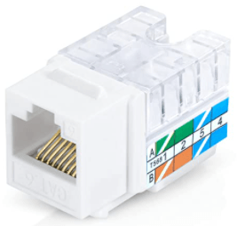 Jacks and Inserts are the actual connection at the wallplate. They are often color coded to distinguish the different connections such as voice and data.